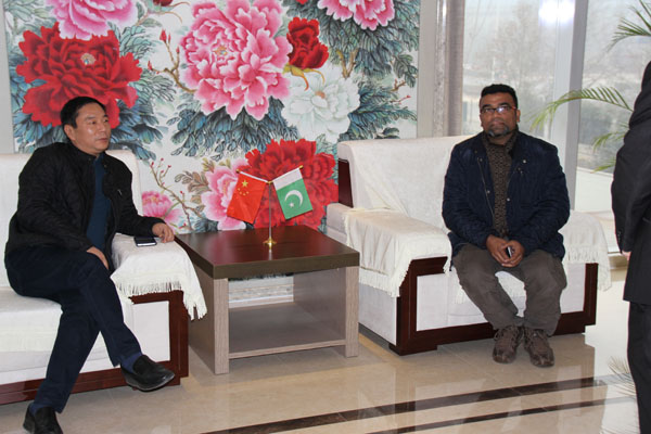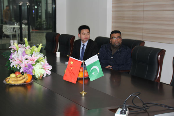 2015-1-24上午在東起集團在(外貿公司張總)的帶領下,一行四人來到公司,進行友好來訪,公司董事長王立建親自接待并陪同客人到車間觀摩。雙方在友好合作的前提下進行了細致的交談,并達成共識。巴基斯坦客人對東起公司做出了肯定,并草擬了合作意向書,此次來訪另客人在十分滿意的前提下***結束!